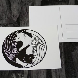 Poster cat Yin und Yang wings angel black white art | Etsy